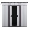 [Outdoor Storage Shed]: With vertical siding and dark gray coating, this outdoor steel shed for backyards, patios, and gardens gives you a handsome and practical storage solution, meeting all of your outdoor organization needs.