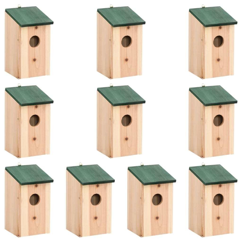 Bird Houses 10 pcs Solid Firwood 4.7"x4.7"x8.7" - Brown