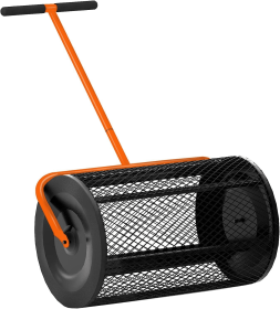 Fruyyzl Compost Spreader, Peat Moss Spreader Roller 24", Lawn Roller with Side Latches, Metal Mesh Basket Top Dressing Spreader for Spreading Manure,